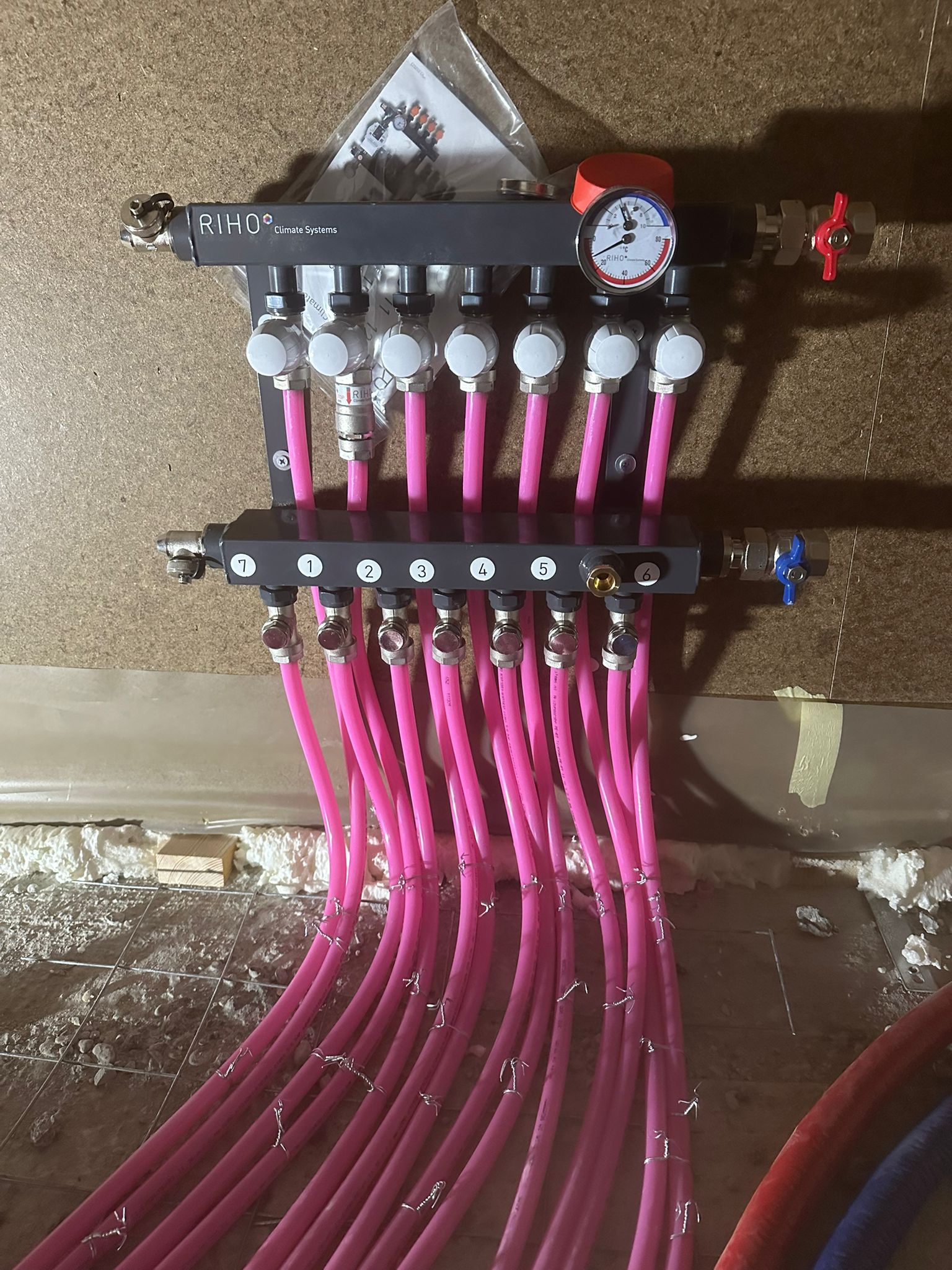 In opdracht van Cevesin hebben wij de complete vloerverwarming verzorgd. Hiervoor kozen we een Netten-systeem met 16 mm PE-RT leidingen, aangesloten op onze eigen RIHO VK verdelers. De regeling van het systeem gebeurt met onze Multikit inclusief koelstop, waarmee de bewoners verzekerd zijn van comfortabel en energiezuinig woonplezier – zowel in de winter als in de zomer.