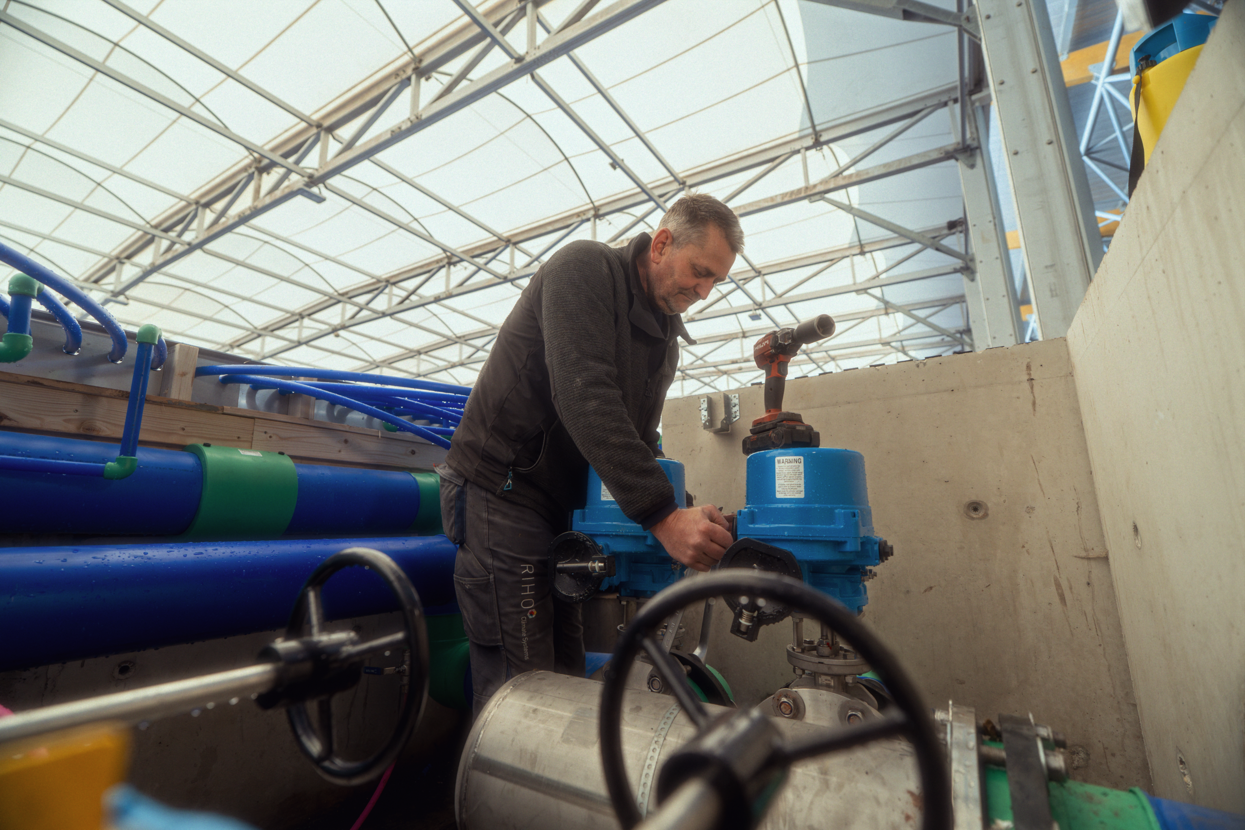 De plaatsing vereiste uiterste nauwkeurigheid: de verdeler moest in een betonnen goot worden gehesen. Daarom werden de segmenten eerst buiten de bak samengevoegd en vervolgens als één geheel naar binnen gebracht. Ook de kniebochten voor de groepen zijn deels door RIHO zelf geprefabriceerd in de werkplaats in Vorden.