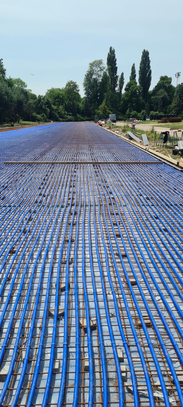 De betonvloer van de 400-meterbaan en krabbelbaan is volledig vernieuwd en voorzien van duurzame kunststof leidingen. Dankzij de precieze montage en het gebruik van diffusiedichte leidingen wordt de ijsvloer optimaal gekoeld. De verdelers en leidingen zijn ontworpen voor een lange levensduur en hoge betrouwbaarheid.