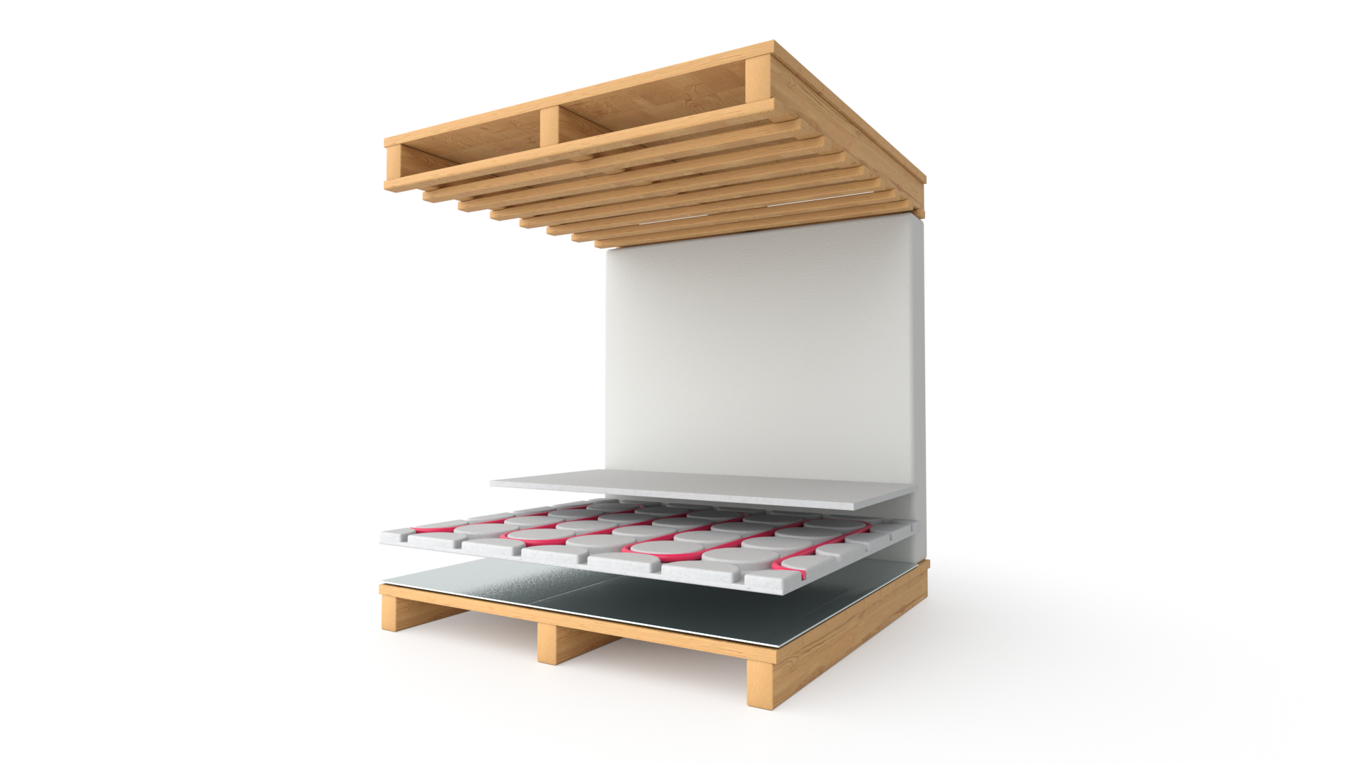Op de vloer worden RIHOCELL-systeemplaten met sleuven uitgelegd (zonder leidingen). Vervolgens voorziet een installatieteam de platen van leidingwerk. Deze zijn volledig afgestemd op specifieke eisen in uw bestek(tekening). U kunt ze direct aanbrengen. Systeemplaten leveren we in Multiplaat 600x500mm en Combiplaat 1000x600mm. Met beiden platen is elke vloer te construeren.