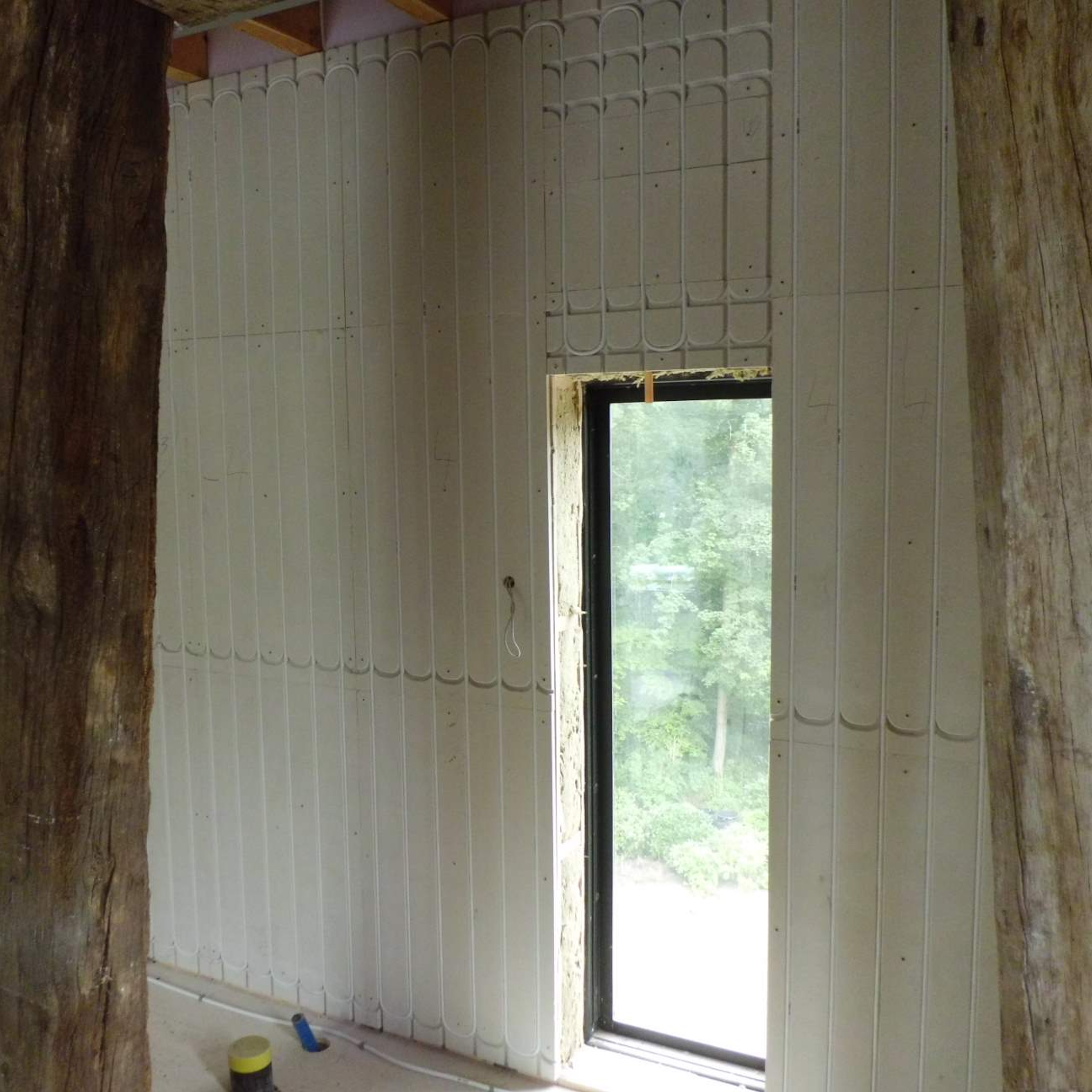Dankzij het droogbouwconcept zijn er geen natte processen nodig, wat het risico op schimmelvorming vermindert en de bouwtijd aanzienlijk verkort. Bovendien blijft de wand volledig vlak en esthetisch af te werken met stuc, behang of tegels, zodat het systeem volledig verdwijnt in het interieur.